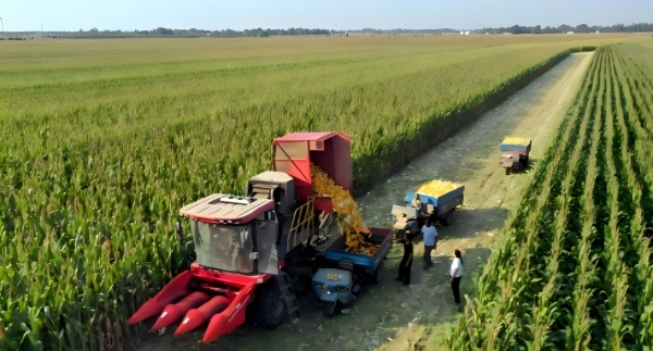 眼下正值玉米收獲期,在山東省菏澤市單縣徐寨鎮(zhèn)的規(guī)模化種植玉米田里,玉米收割機(jī)正在田間奔跑忙碌著采收玉米。